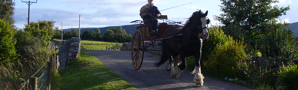 ‘Monts’ provides the muscle at Clova Carriages, where he transports clients around Donside throughout the summer.